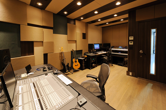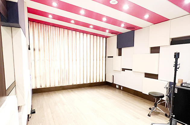 程よいナチュラルなアコースティックを提供し、ヴォーカル、ドラムからナレーション録りまで幅広い対応が可能な、響きを抑えた1階Bスタジオ